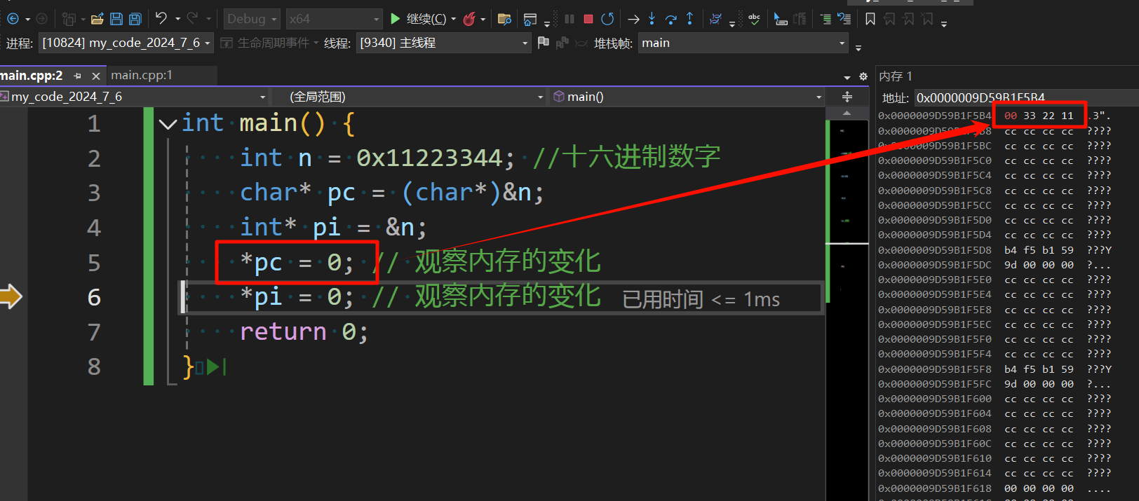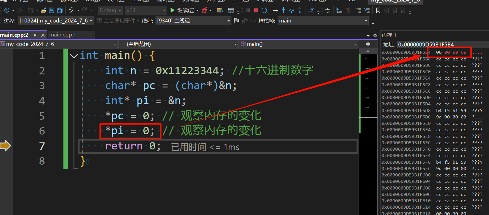 // 使用不同类型的指针进行解引用, 并且尝试直接修改内存里的值