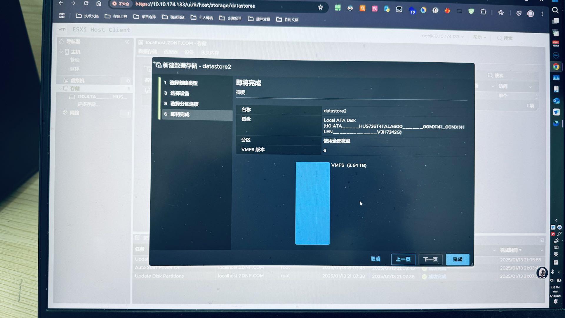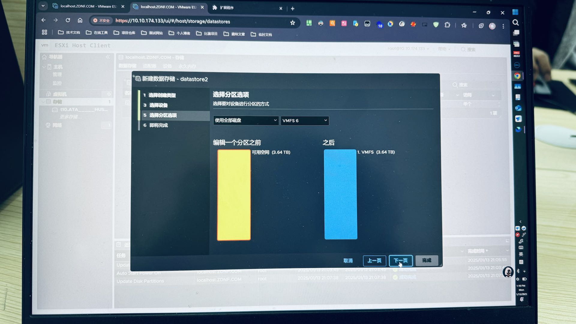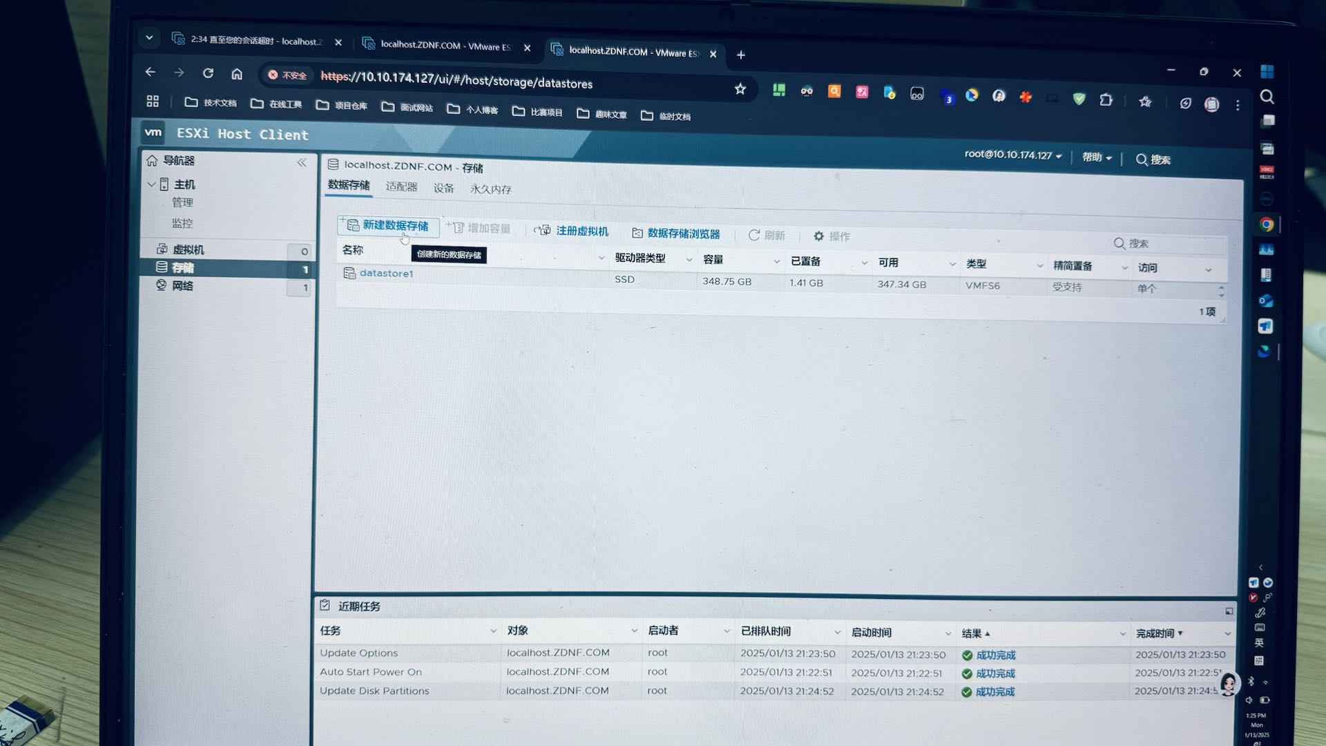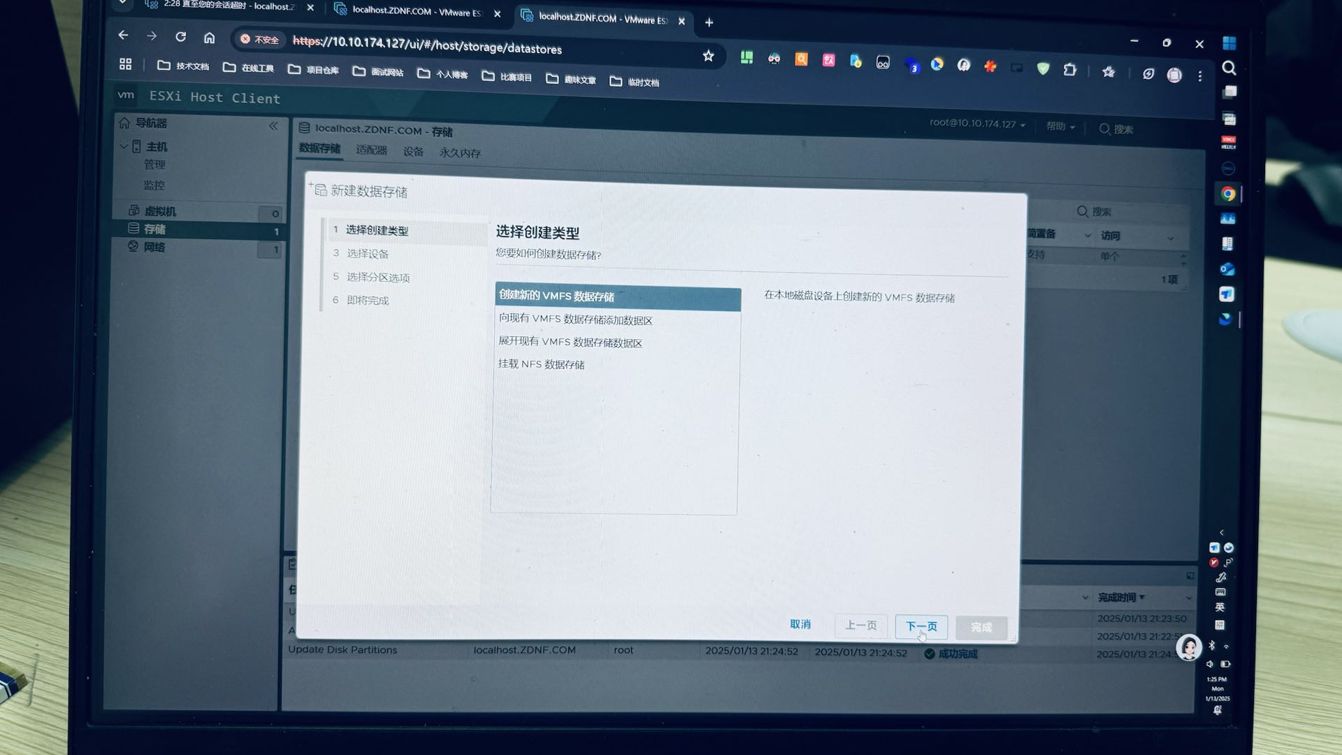 补充:这里如果没有看到系统盘以外的数据盘,可能是数据盘内存放一些旧数据无法被 ESXi 挂载,这边建议您备份好重要数据后,清空该磁盘分区后挂载到 ESXi 系统上,方便后续创建多个虚拟主机。