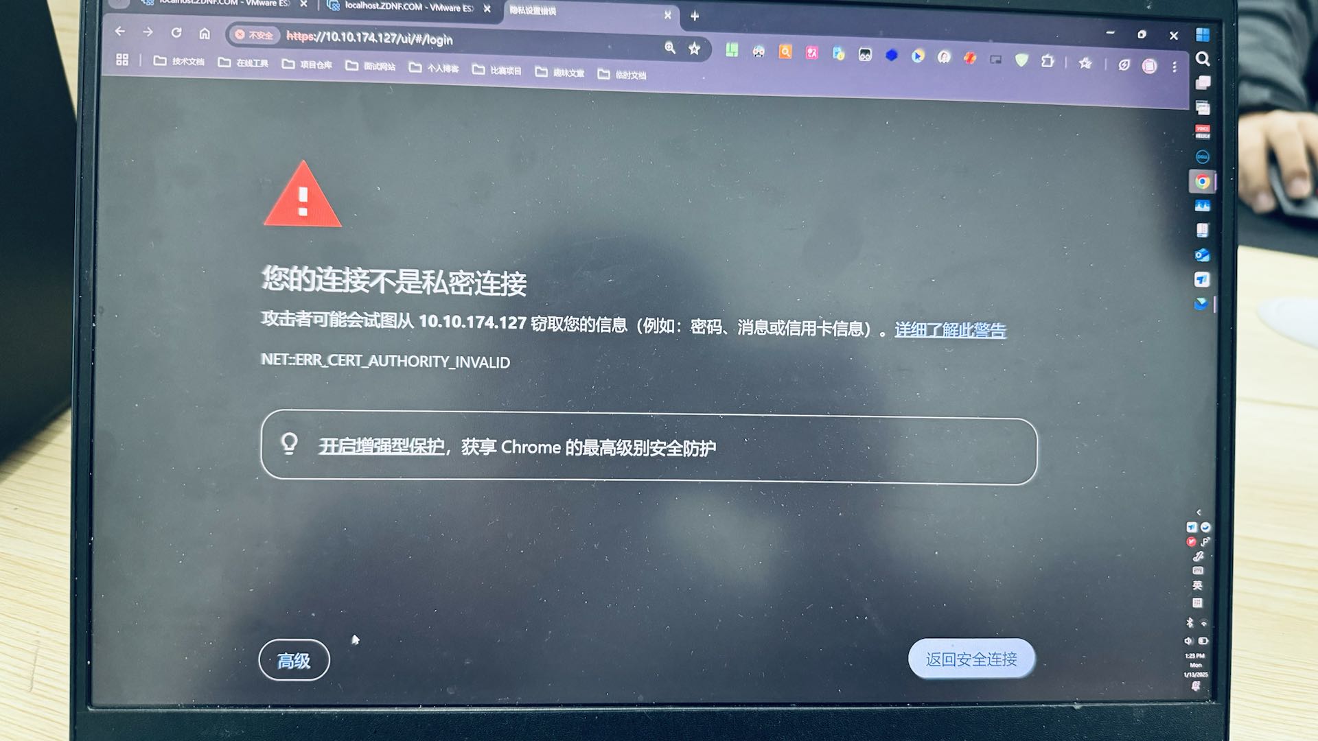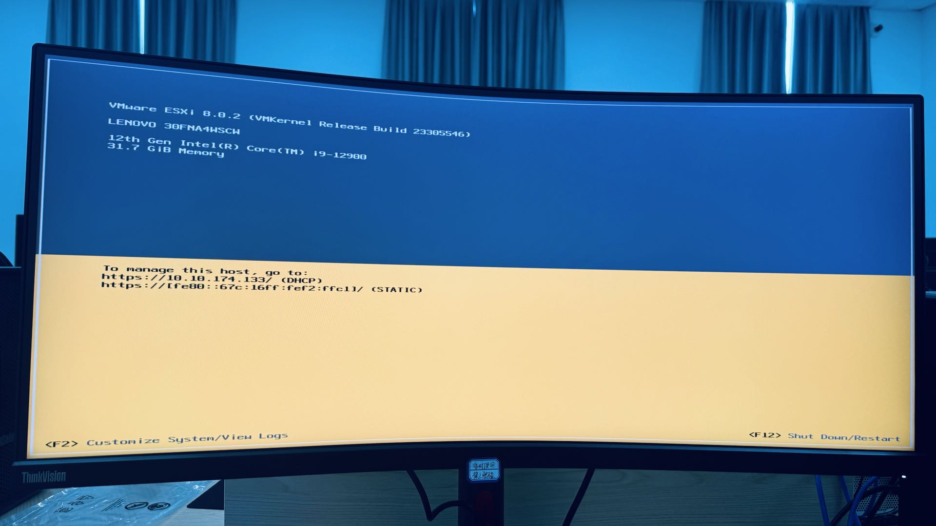 安装 ESXi 操作系统成功,不过这个操作系统最简单的操作方式是使用启动界面处的 https 地址,在浏览器中访问即可。