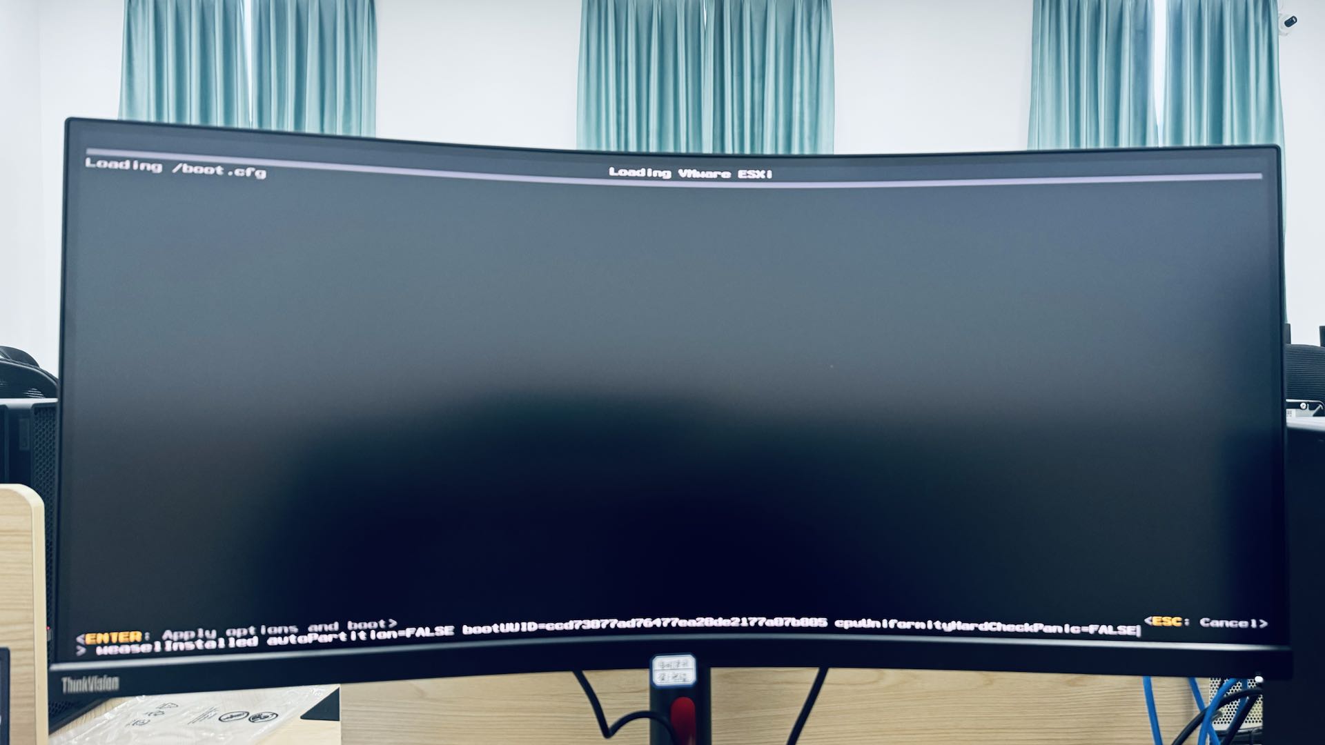 CPU不兼容的问题,则可以在重启的倒计时页面中,反复输入[shift + o],直到中断ESXi系统的初始化过程(在反复键入[shift + o]的过程中有可能会输入字符O,请一定记得仔细删除),并且输入cpuUniformityHardCheckPanic=FALSE后键入[enter]来跳过CPU检查即可(还是那句话,尝试一下没什么坏处,大部分情况下也不会出现问题)。
