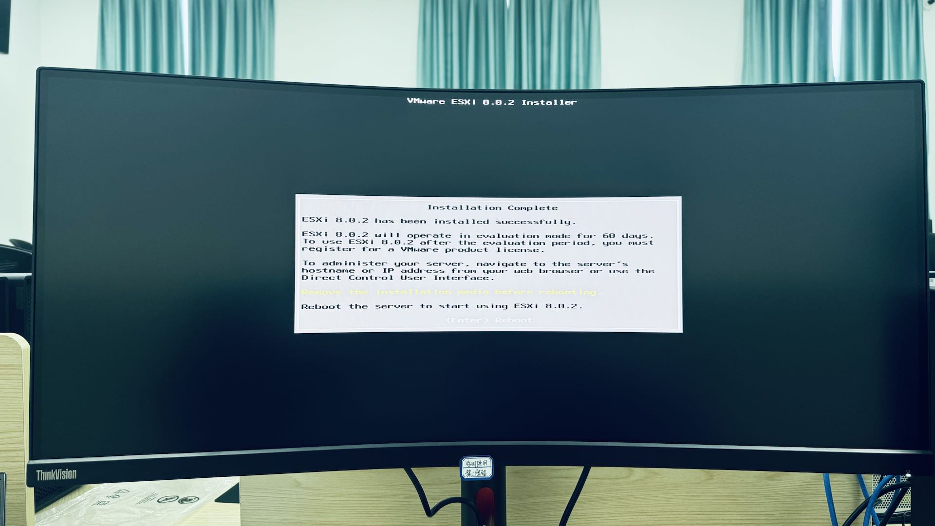 重启主机即可完成 ESXi 的安装过程。